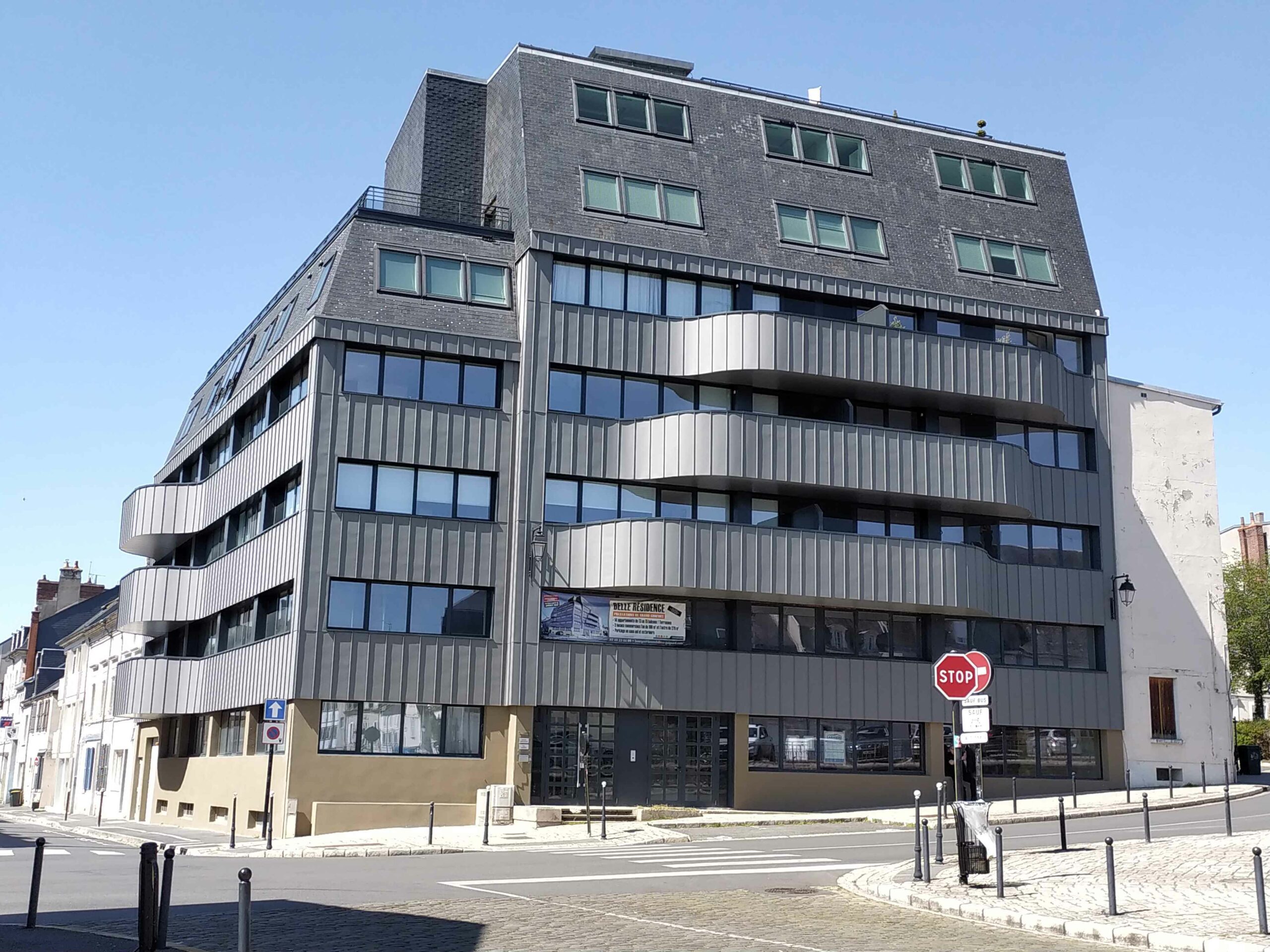 La restructuration d’un immeuble place de la Nation à Bourges a consisté à transformer les plateaux de bureaux en logements familiaux haut de gamme. La façade a entièrement été repensée avec l’ajout d’un bardage zinc et de balcon en vague. Une grande terrasse végétalisée a été créée au 5e niveau. Un roof-top a également été imaginé sur le toit du dernier niveau. Le rez-de-chaussée accueille à présent des locaux professionnels.
